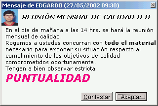 usuario, y se lo presentará por medio una ventana de mensaje entrante.